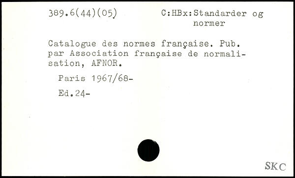 Catalogue des normes française. Pub. par Association française de normalisation, AFNOR.