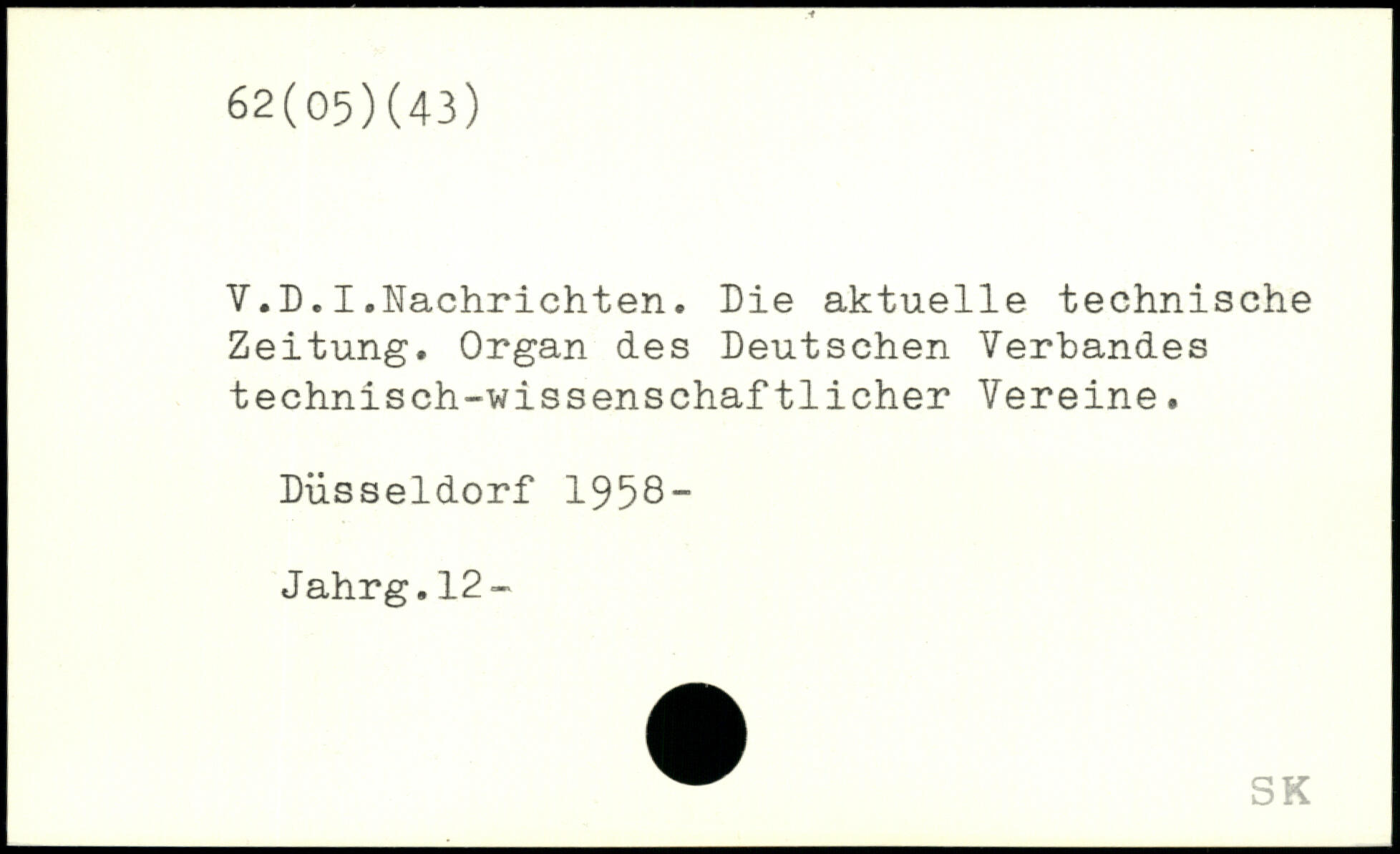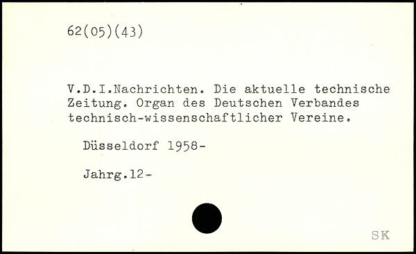 V.D.I.Nachrichten. Die aktuelle technische Zeitung. Organ des Deutschen Verbandes technisch-wissenschaftlicher Vereine. Düsseldorf 1958- Jahrg.12-
