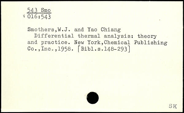 Smothers,W.J. and Yao Chiang Differential thermal analysis: theory and practice.