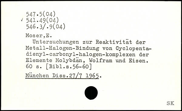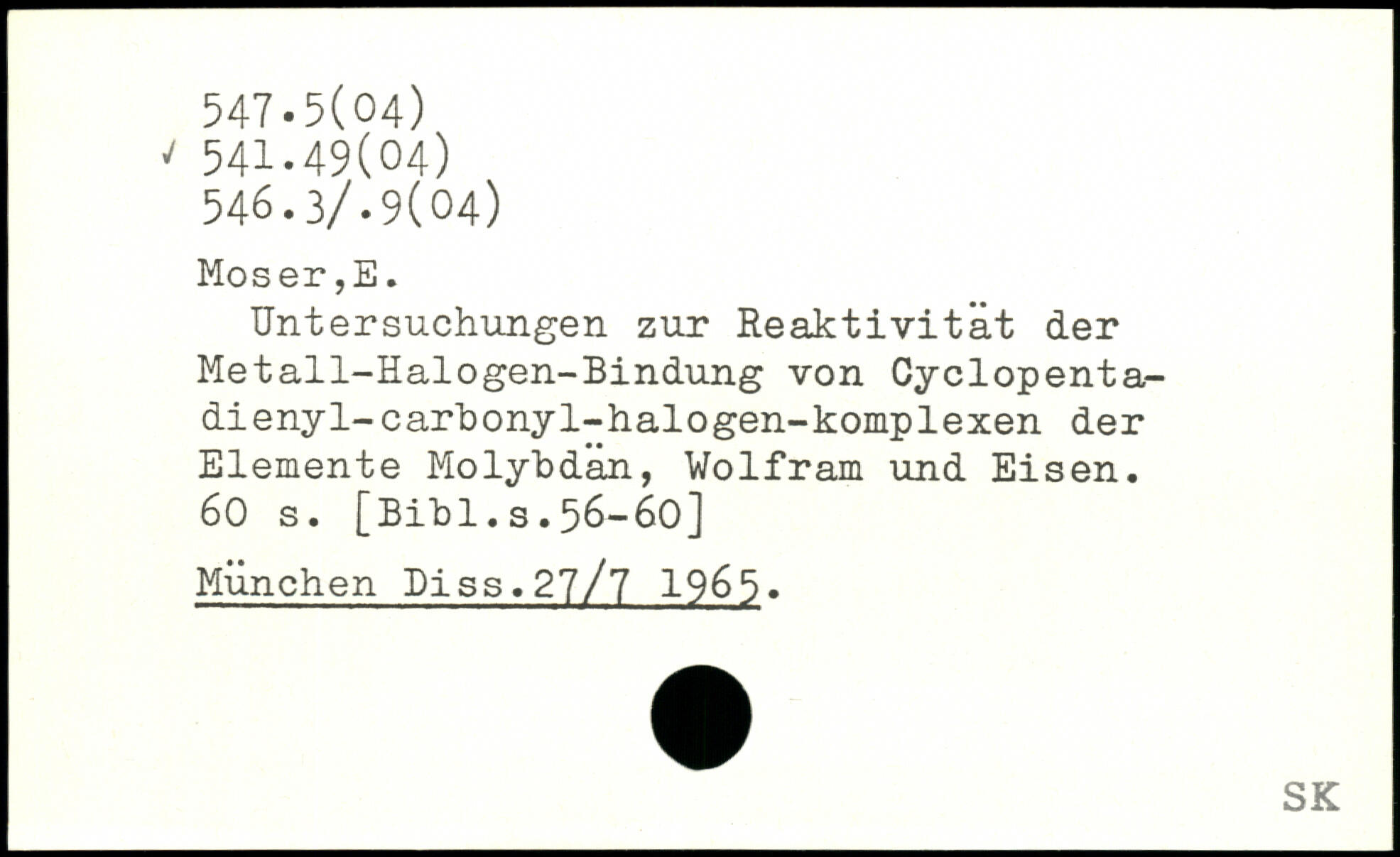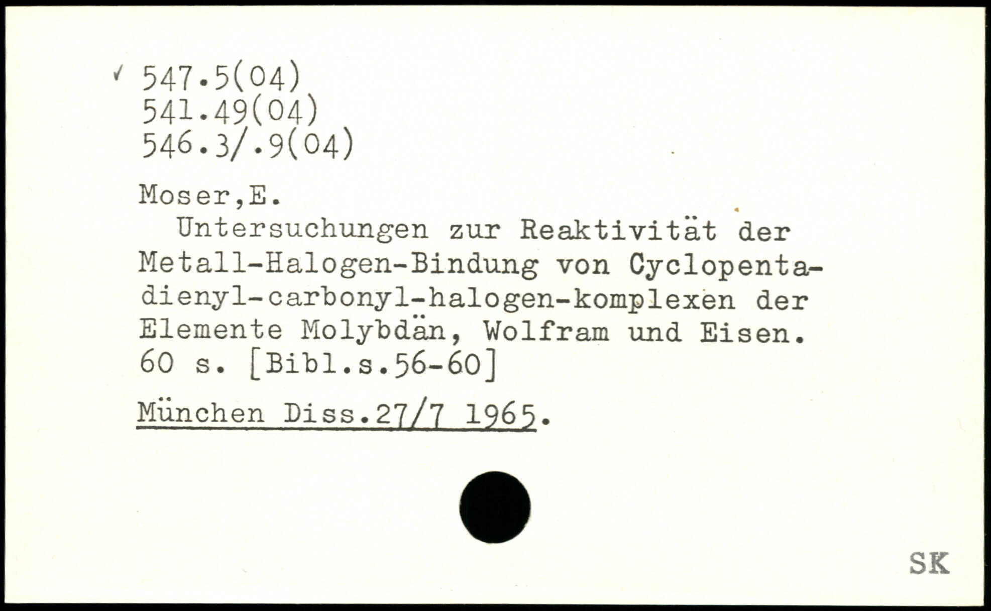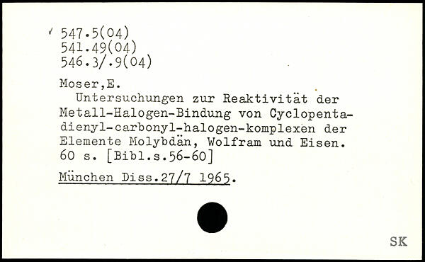 Untersuchungen zur Reaktivität der Metall-Halogen-Bindung von Cyclopenta-dienyl-carbonyl-halogen-komplexen der Elemente Molybdän, Wolfram und Eisen.