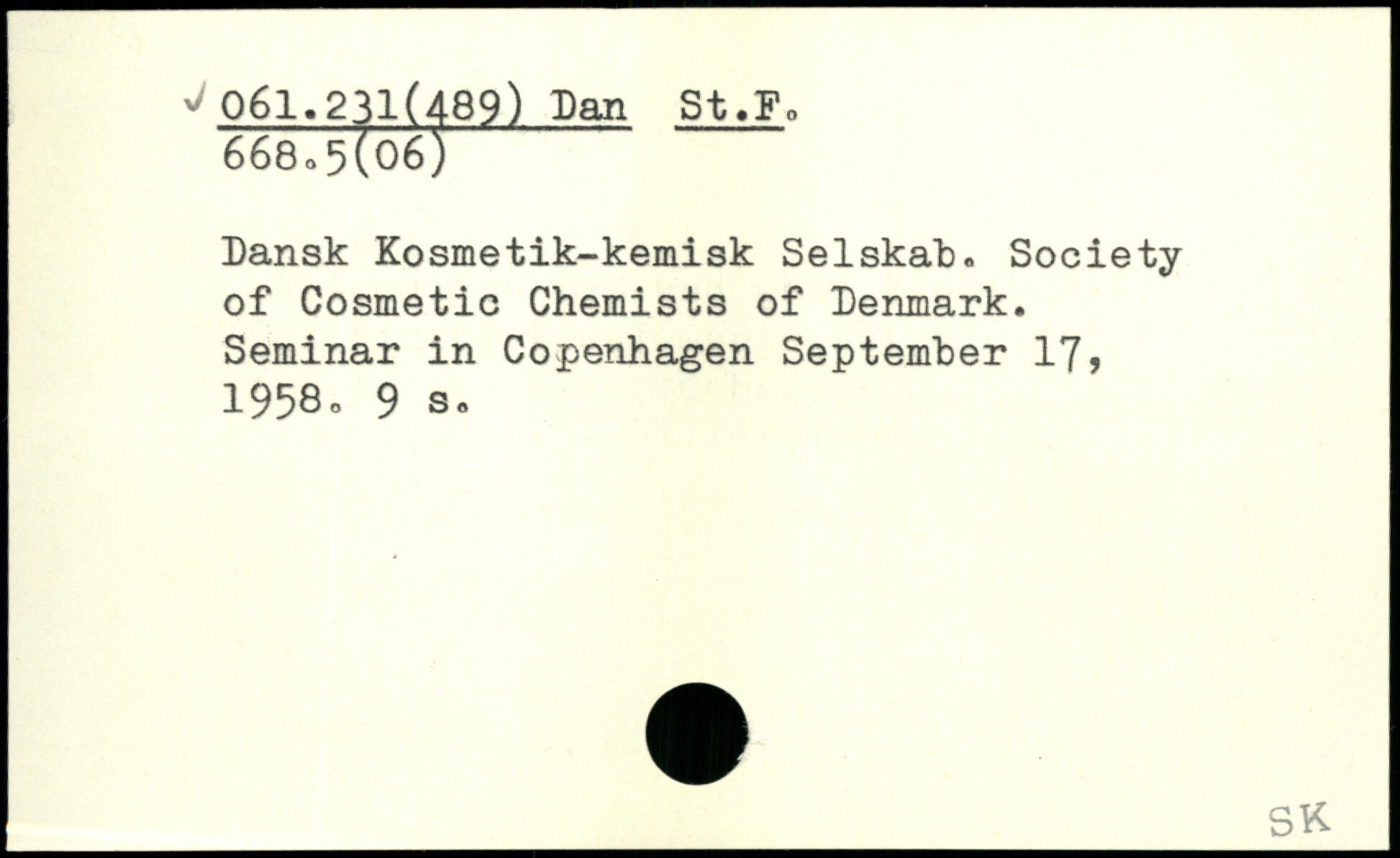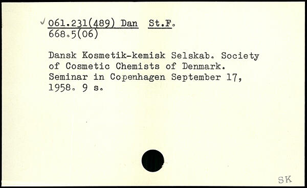 Dansk Kosmetik-kemisk Selskab. Society of Cosmetic Chemists of Denmark. Seminar in Copenhagen September 17, 1958.