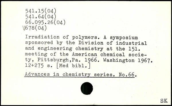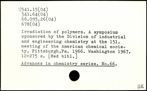 Irradiation of polymers. A symposium sponsored by the Division of industrial and engineering chemistry at the 151. meeting of the American chemical society, Pittsburgh,Pa. 1966.