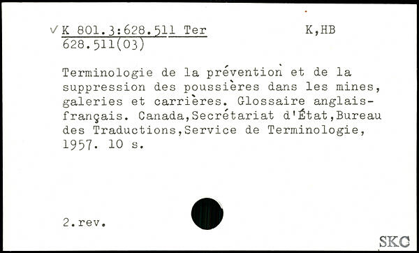 Terminologie de la prévention et de la suppression des poussières dans les mines, galeries et carrières. Glossaire anglais-français. Canada,Secrétariat d’État