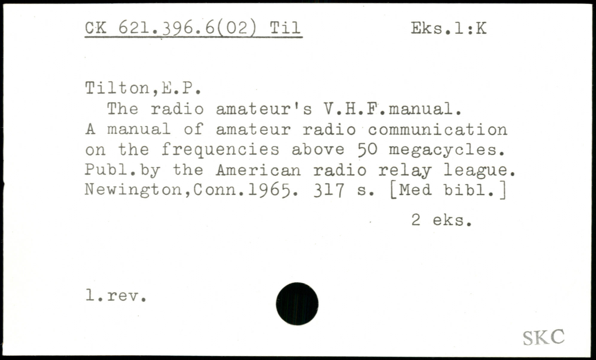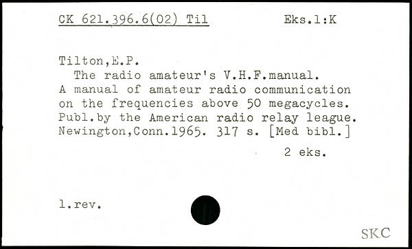 The radio amateur's V.H.F.manual. A manual of amateur radio communication on the frequencies above 50 megacycles.