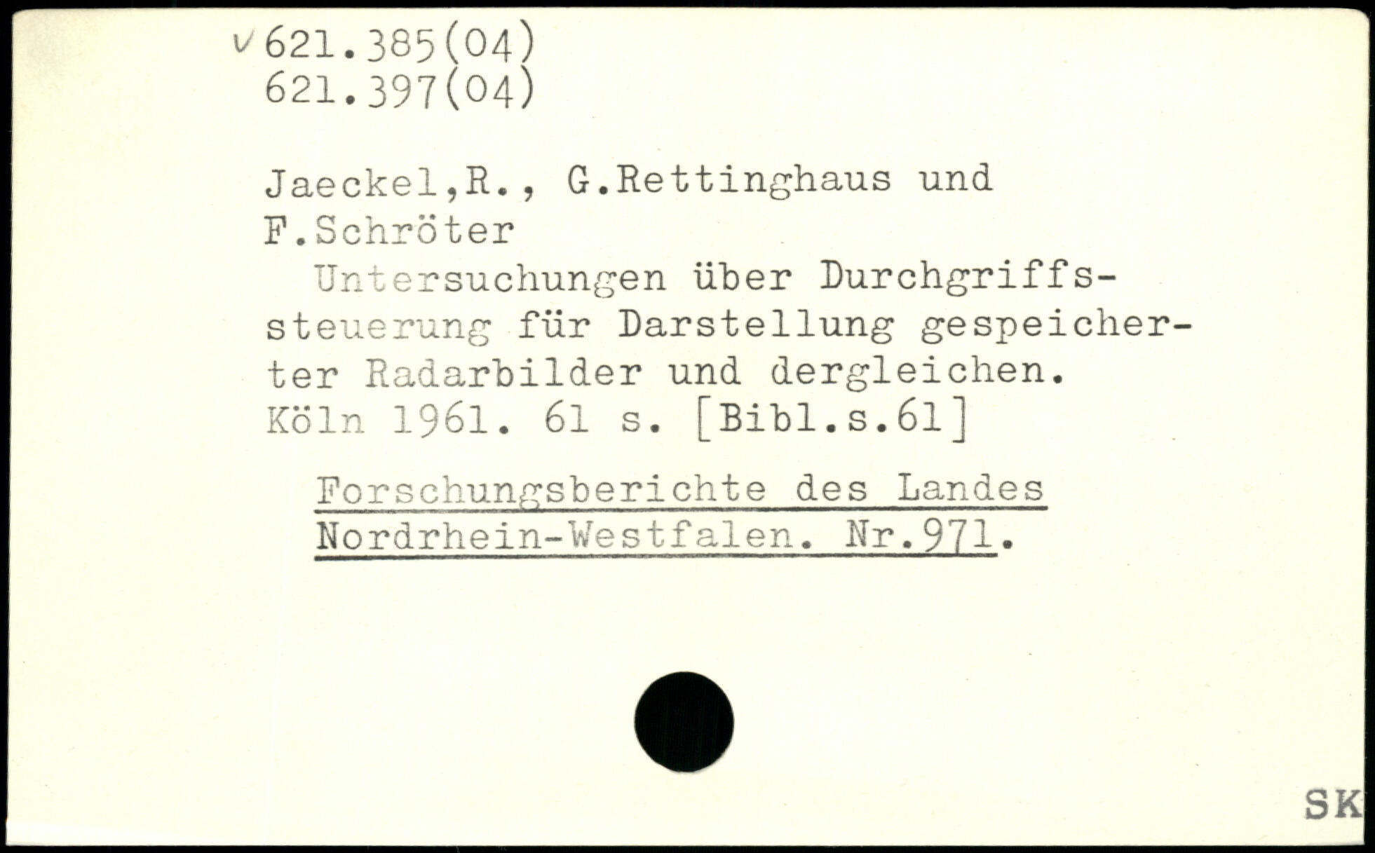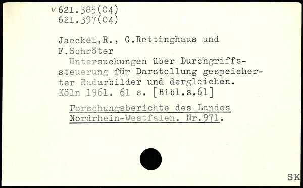 Jaeckel,R., G.Rettinghaus und F.Schröter Untersuchungen über Durchgriffssteuerung für Darstellung gespeicherter Radarbilder und dergleichen.