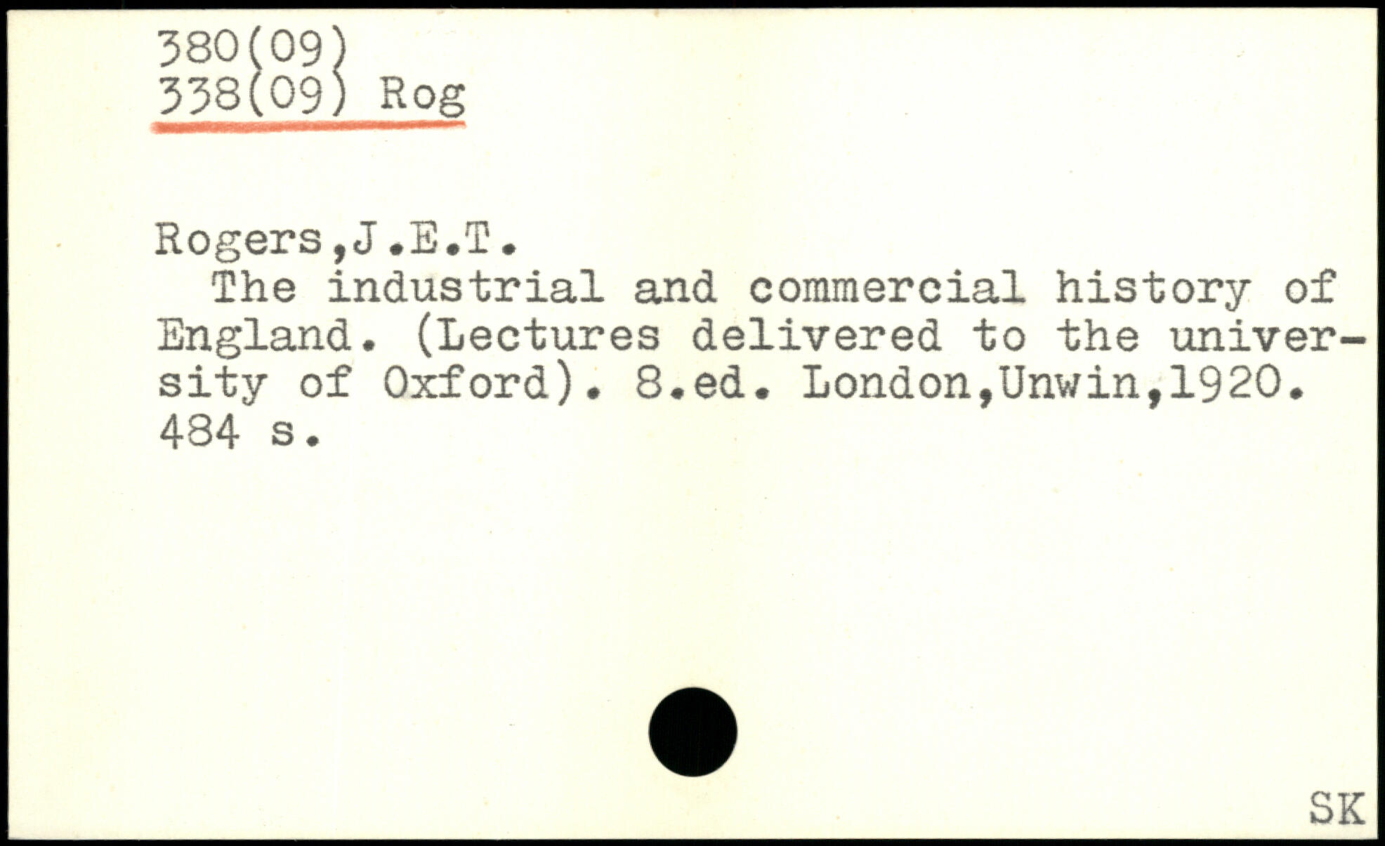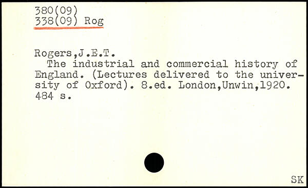 The industrial and commercial history of England. (Lectures delivered to the university of Oxford).