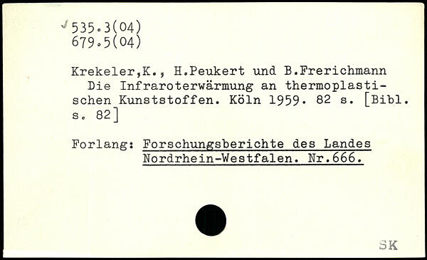 Krekeler,K., H.Peukert und. B.Frerichmann Die Infraroterwärmung an thermoplastischen Kunststoffen.