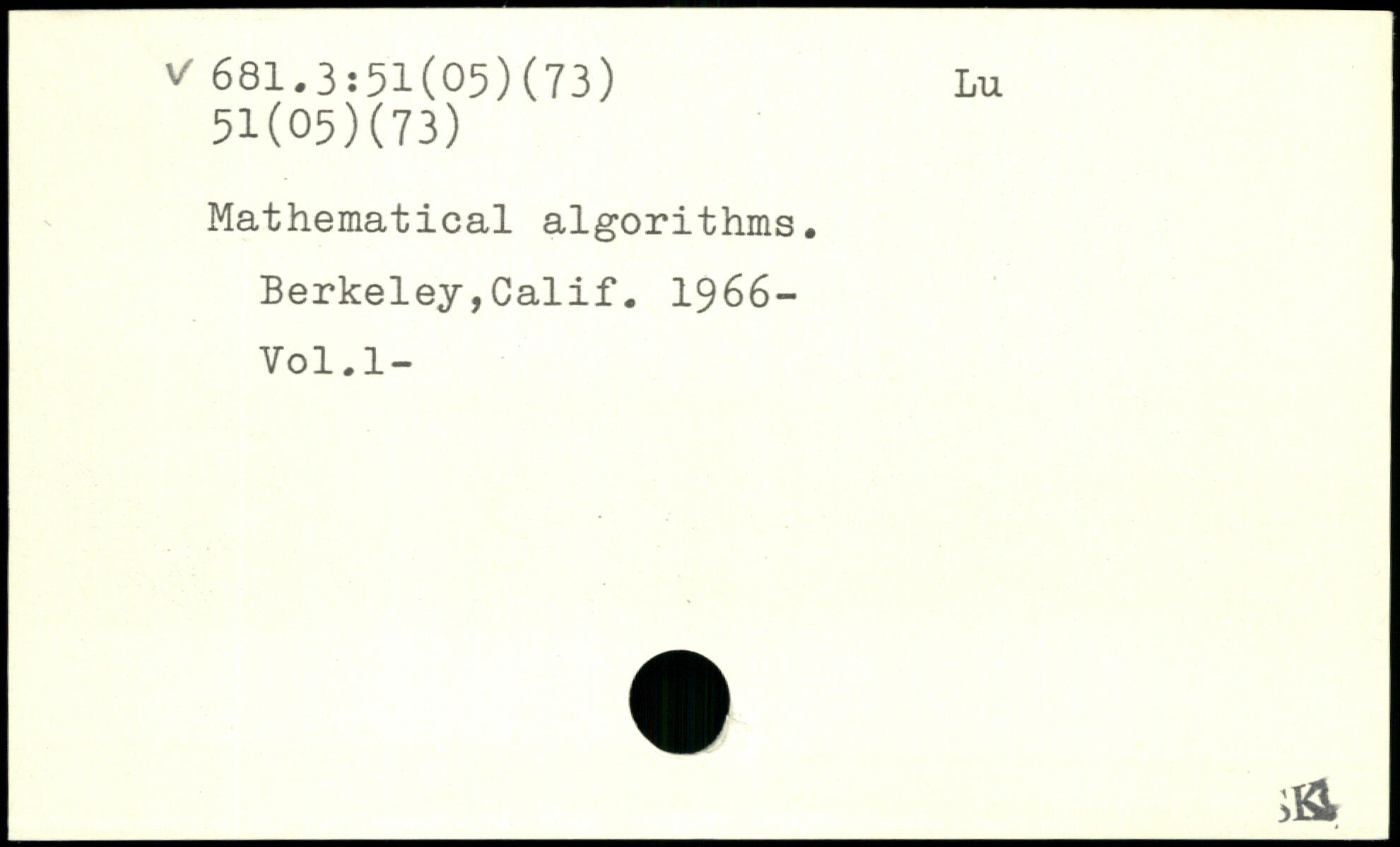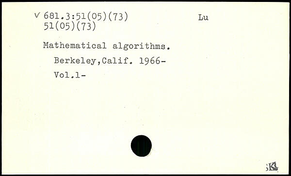 Mathematical algorithms. Berkeley,Calif. 1966-Vol.l-