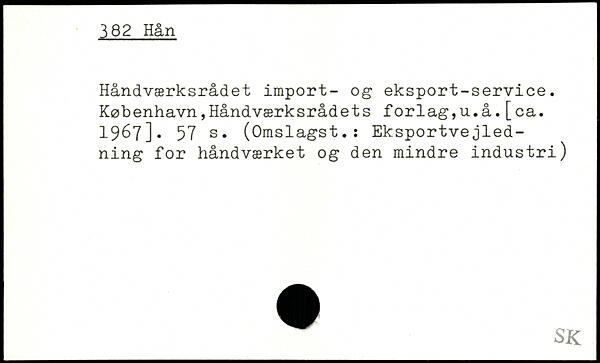 Håndværksrådet import- og eksport-service. København,Håndværksrådets forlag,u.å.[ca. 1967]