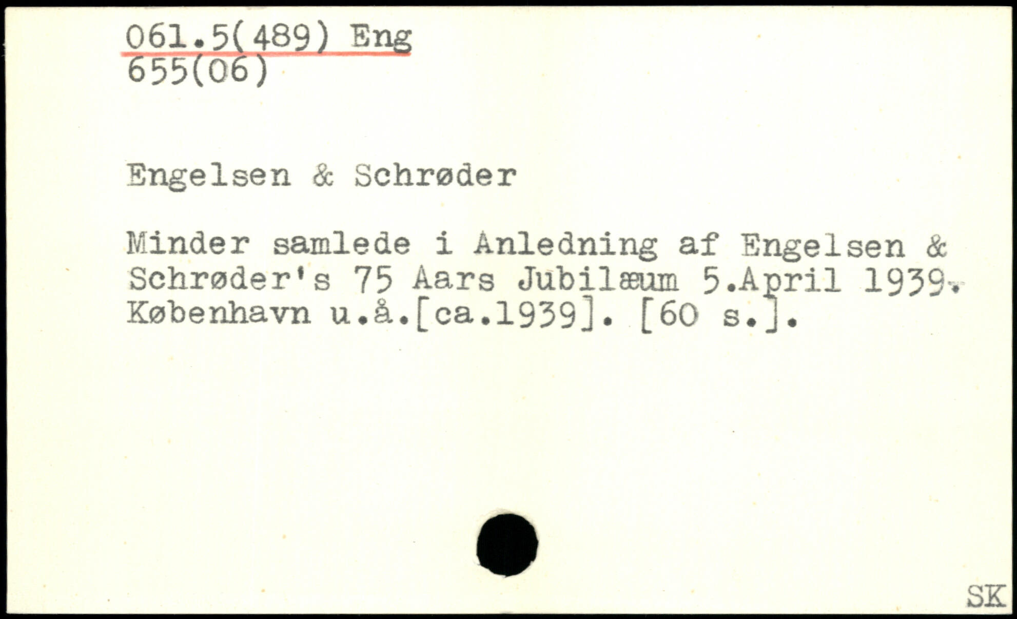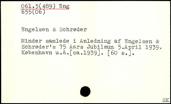 Minder samlede i Anledning af Engelsen & Schrøderes 75 Aars Jubilæum 5.April 1939-, København u.å.[ca.1939]. [