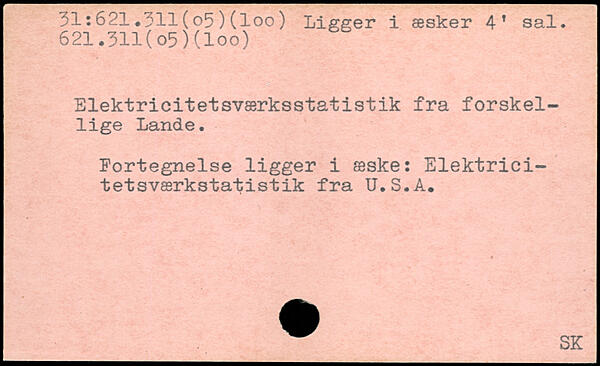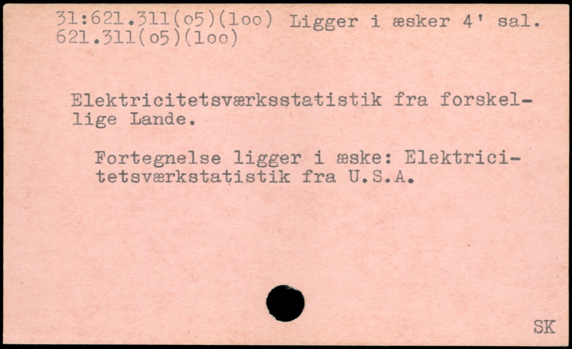 Elektricitetsværksstatistik fra forskellige Lande. Fortegnelse ligger i æske: Elektricitetsværkstatistik fra U.S.A.