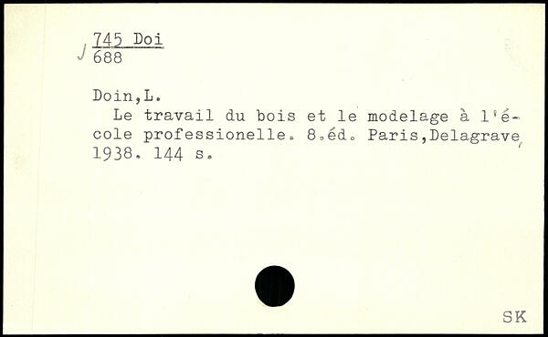 Le travail du bois et le modelage à l'école professionelle. 8.éd. Paris,Delagrave 1938.