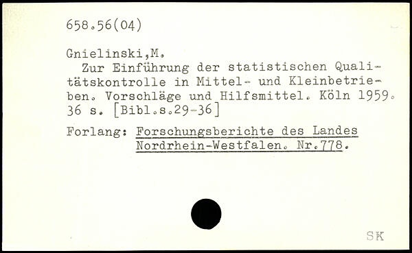 Zur Einführung der statistischen Qualitätskontrolle in Mittel- und Kleinbetriebeno Vorschläge und Hilfsmittel,.