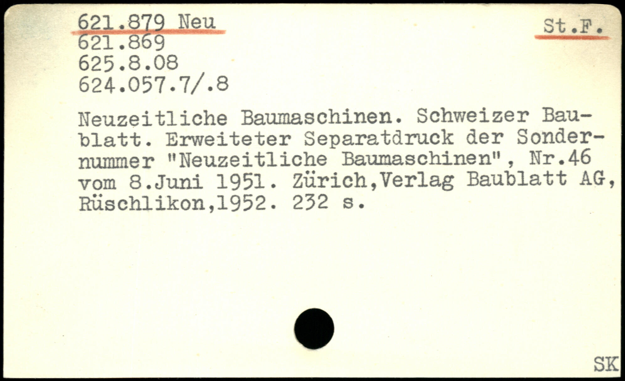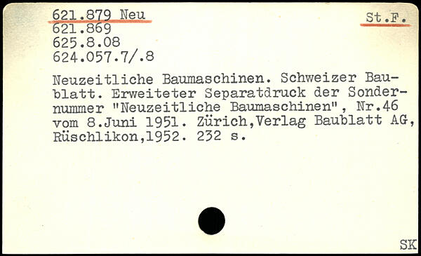 Neuzeitliche Baumaschinen. Schweizer Bau-hlatt. Erweiteter Separatdruck der Sondernummer ”Neuzeitliche Baumaschinen", Nr.46 vom 8.Juni 1951.