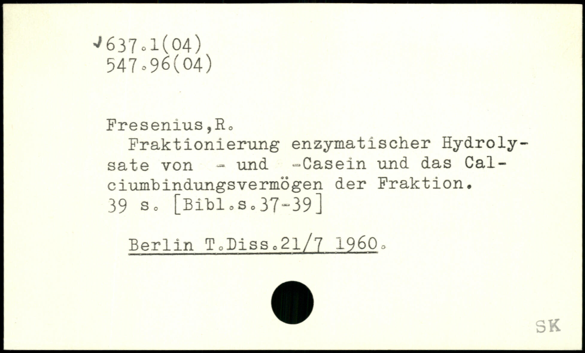 Fraktionierung enzymatischer Hydrolysate von - und -Casein und das Calciumbindungsvermögen der Fraktion.