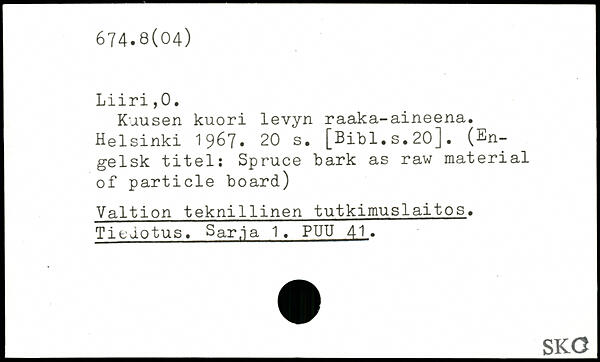 Kuusen kuori levyn raaka-aineena. Helsinki 19^7