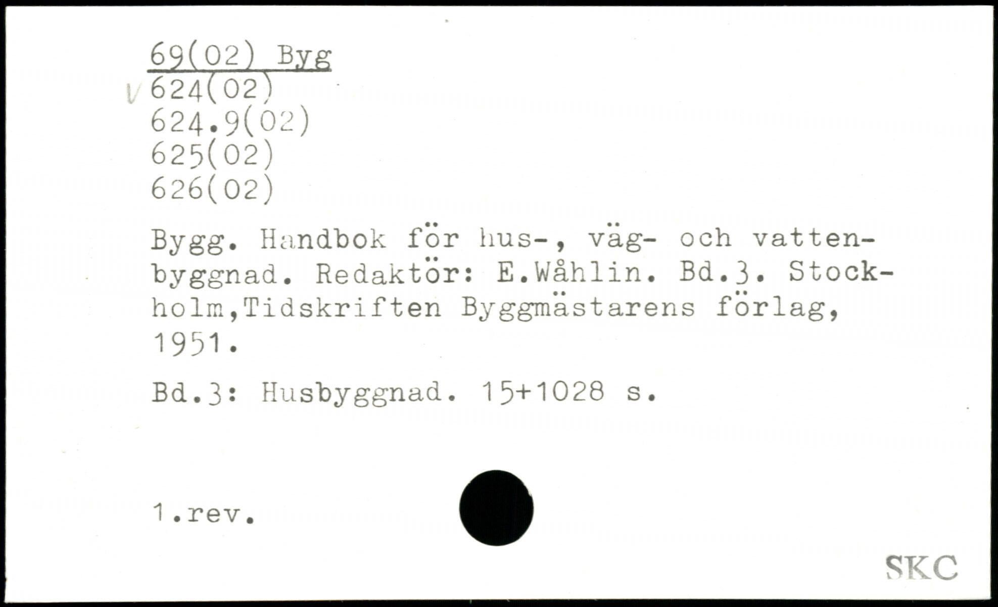 Bygg. Handbok för hus-, väg- och vattenbyggnad. Redaktör: E.Wåhlin.