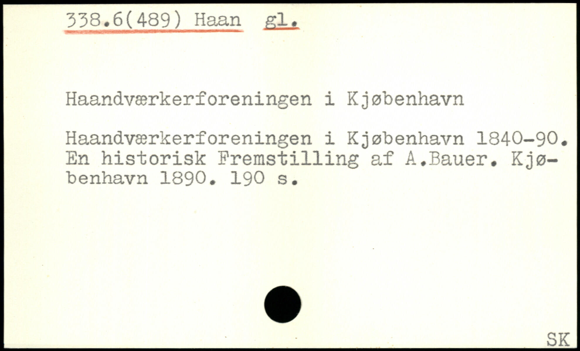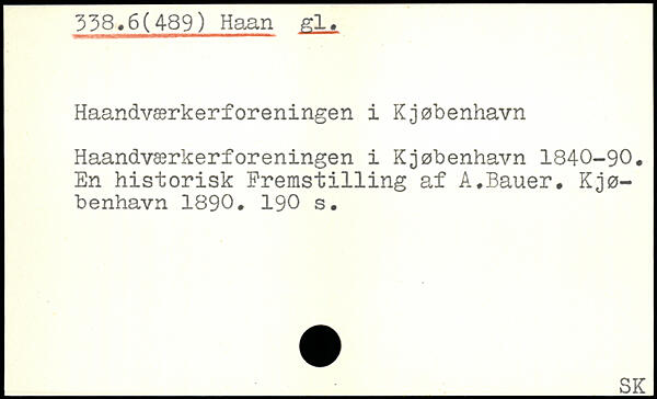 Haandværkerforeningen i Kjøbenhavn 1840-90. En historisk Fremst1111ng af A.Bauer. Kjø-benhavn 1890.