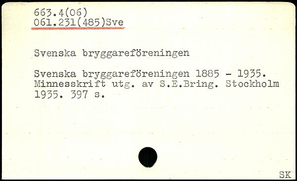 Svenska bryggareföreningen Svenska bryggareföreningen 1885 - 1935. Minnesskrift utg. av S.E.Bring.
