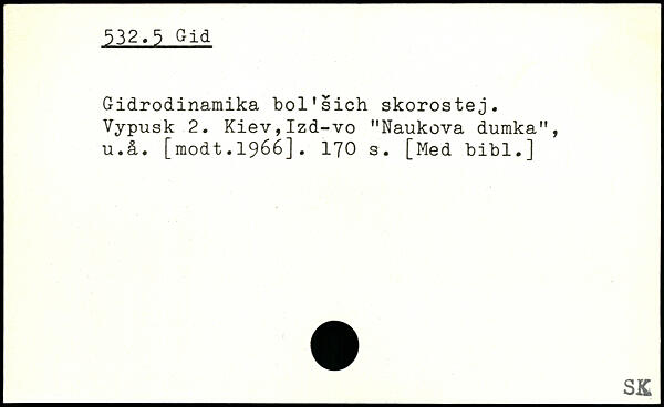 Gidrodinamika bol'sich skorostej. Vypusk 2. Kiev,Izd-vo "Naukova dumka", u.å. [raodt.1966].