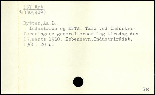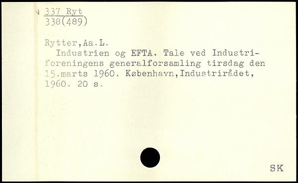 Rytter,Aa,L, Industrien og EFTA. Tale ved Industriforeningens generalforsamling tirsdag den 15.marts 1960.