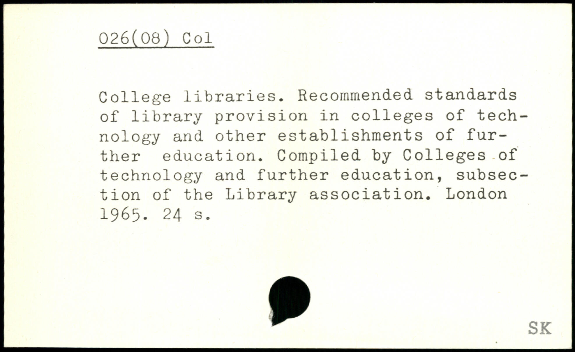 College libraries. Recommended, standards of library provision in colleges of technology and other establishments of further education. Compiled by Colleges of technology and further education, subsection of the Library association.