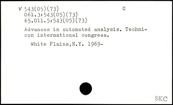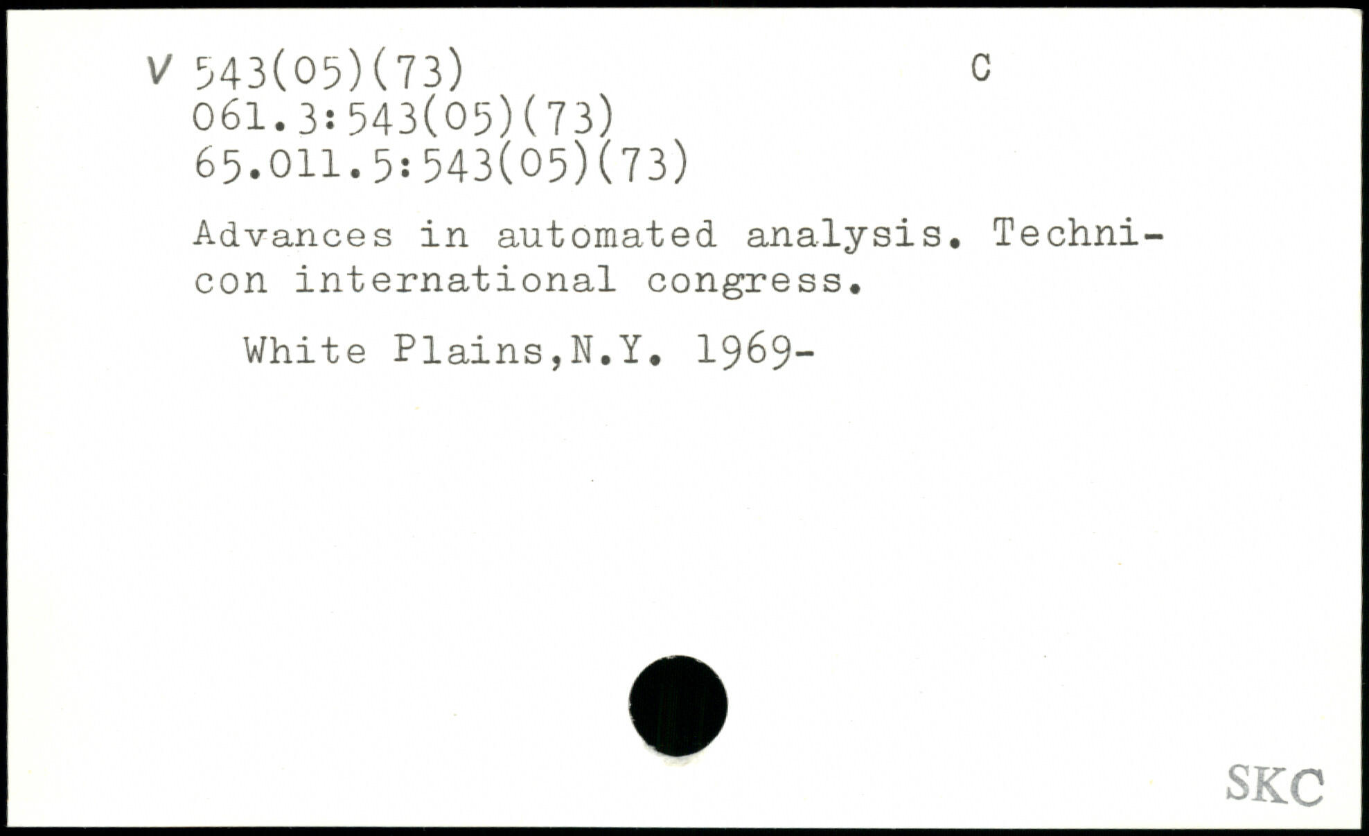 Advances in automated analysis. Techni-con international congress. White Plains,N.Y. 1969-