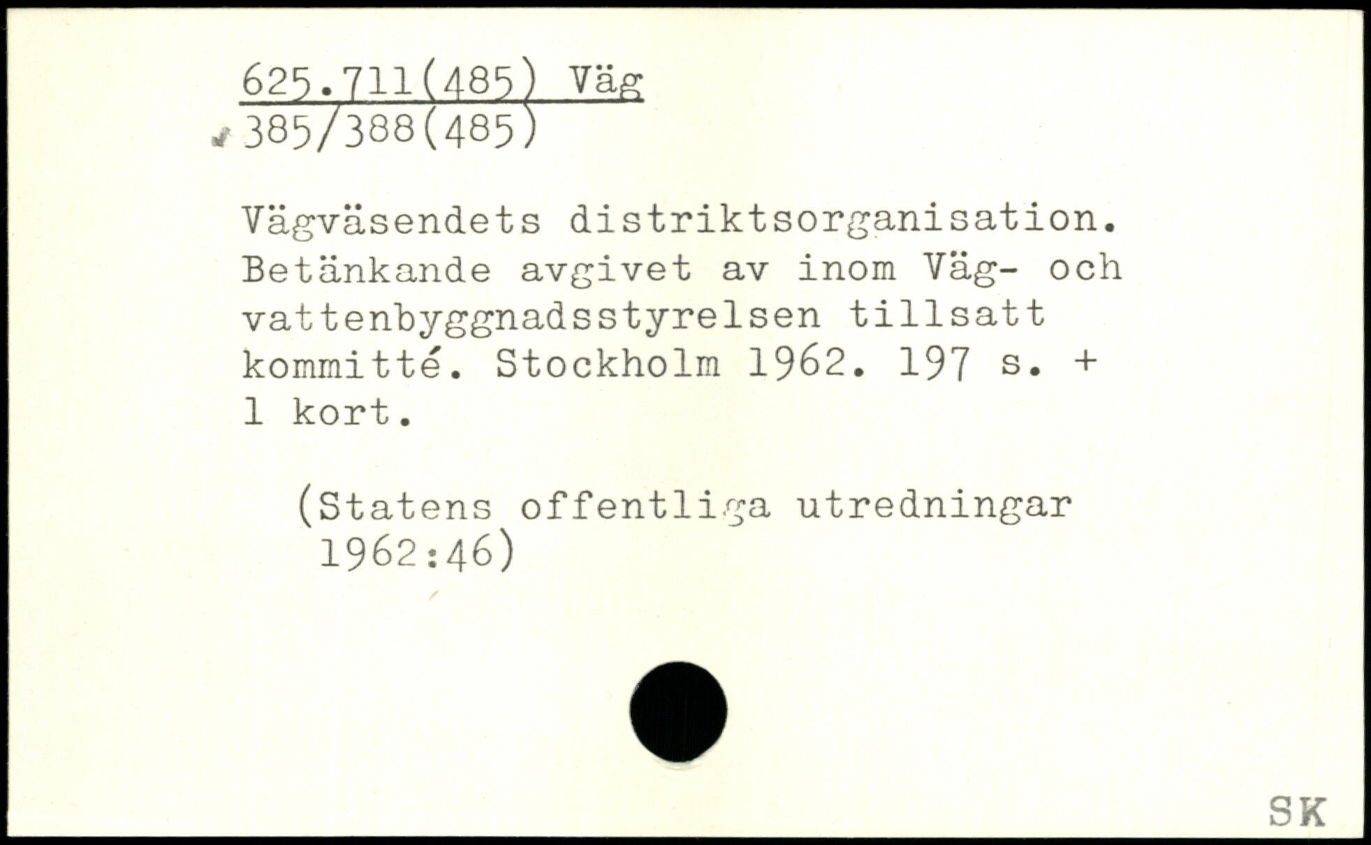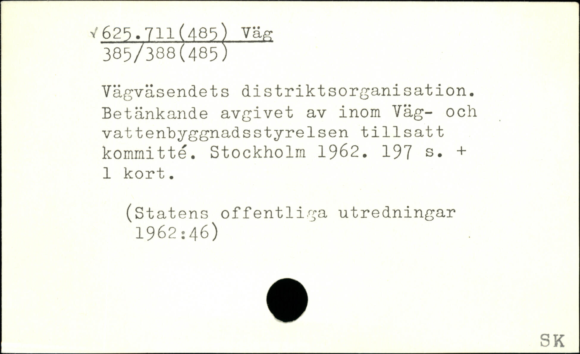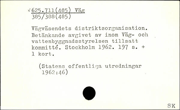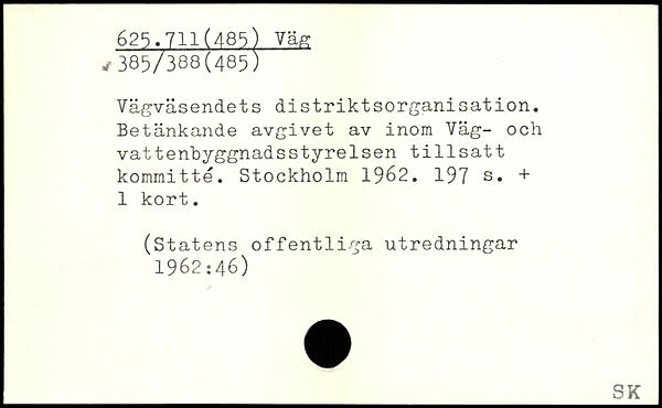 Vägväsendets distriktsorganisation. Betänkande avgivet av inom Väg- och vattenbyggnadsstyrelsen tillsatt kommitté.