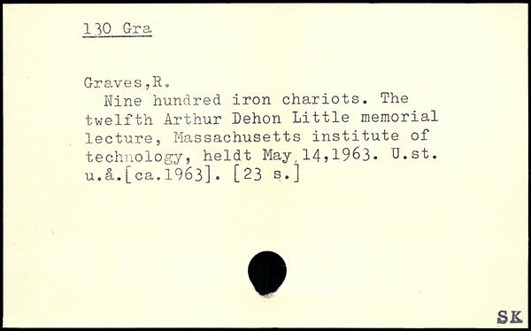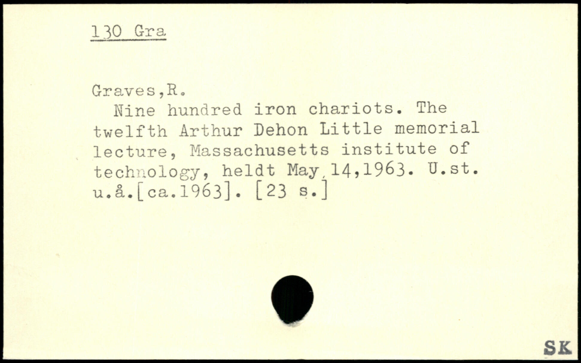 Nine hundred iron chariots. The twelfth Arthur hehon Little memorial lecture, Massachusetts institute of technology, heldt May,14,1963. U.st. u.a.[ca.1963]. [
