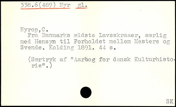 Fra Danmarks ældste Lavsskraaer, særlig med Hensyn til Forholdet mellem Mestere og Svende. Kolding 1891.