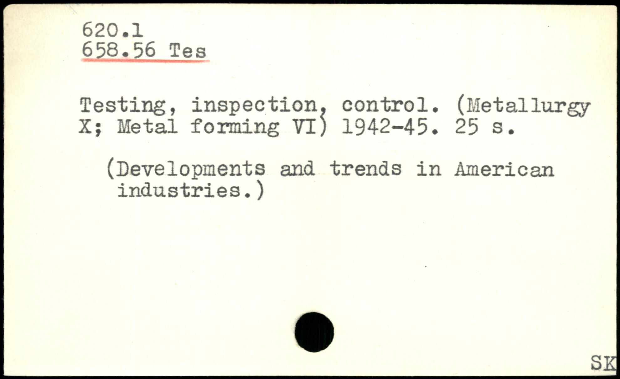 Testing, inspection, control. (Metallurgy X; Metal forming VT; 1942-45.