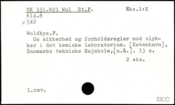 Om sikkerhed og forholdsregler mod ulykker i det kemiske laboratorium.