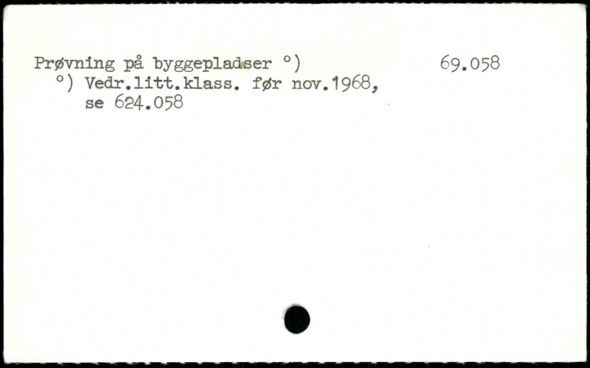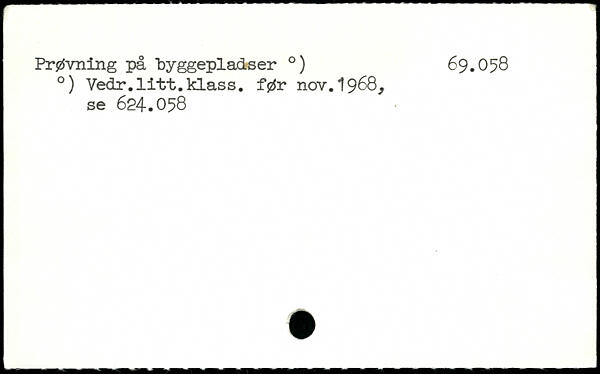 Prøvning på byggepladser .) 69.058 .) Vedr.litt.klass. før nov.1968, se 624.058
