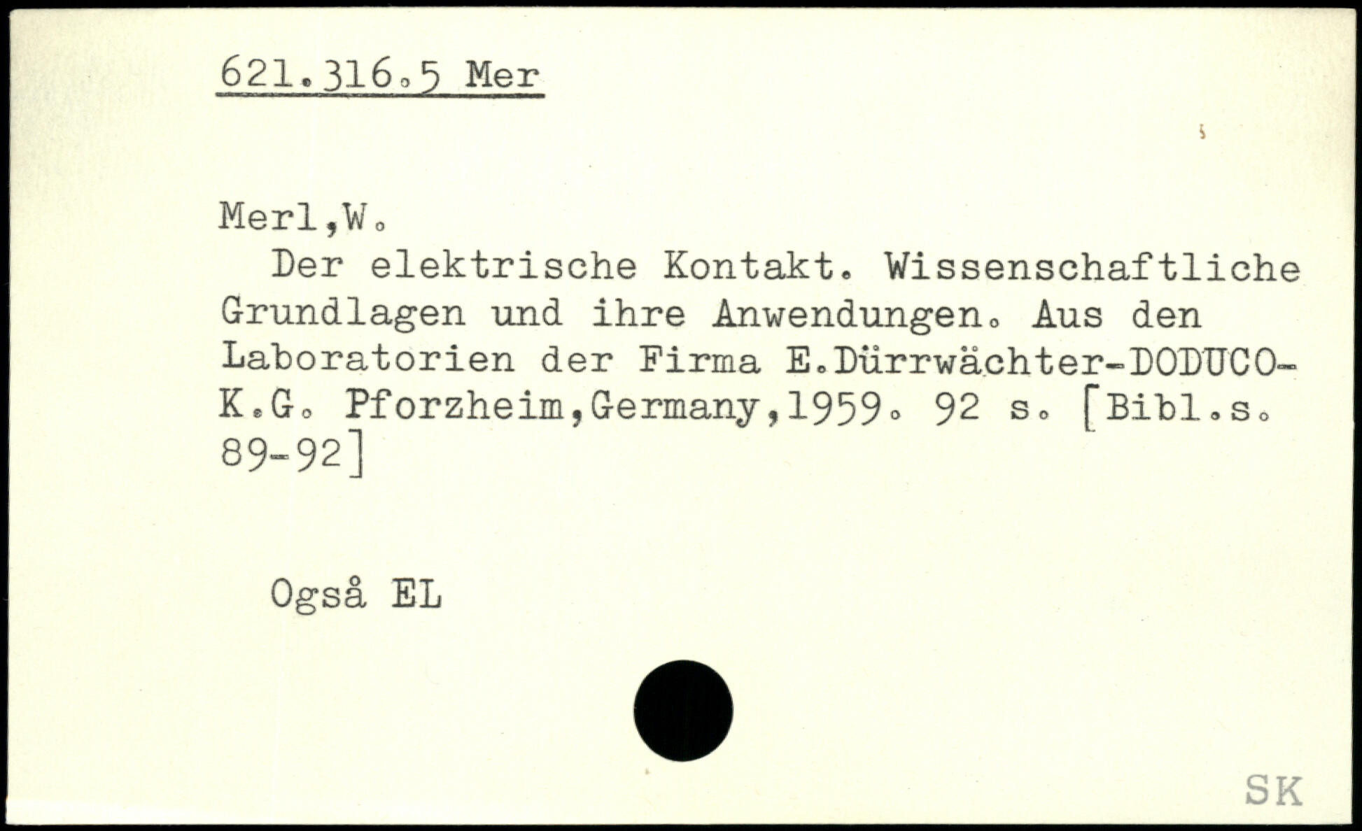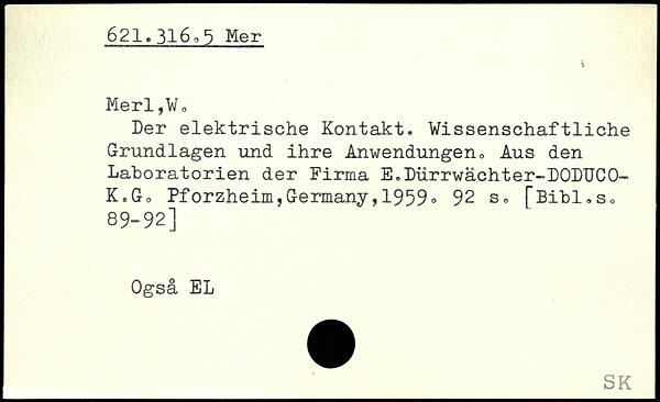 Der elektrische Kontakt. Wissenschaftliche Grundlagen und ihre Anwendungen., Aus den Laboratorien der Firma E.Dürrwächter-DODUCO-K.