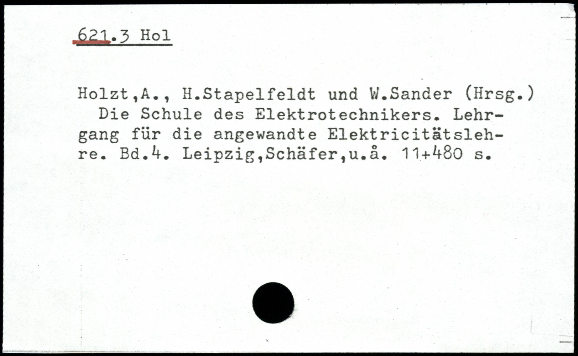 Holzt,A., H.Stapelfeldt und V/.Sander (Hrsg.) Die Schule des Elektrotechnikers. Lehrgang für die angewandte Elektricitätsleh-re.