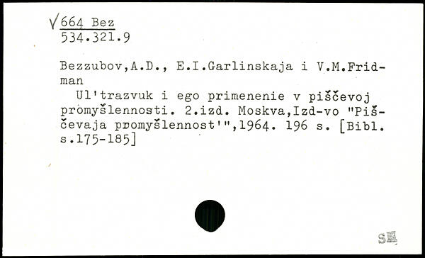 Ul'trazvuk i ego primenenie v piscevoj prömyslennosti. 2.izd. Moskva,Izd-vo "Pis-cevaja promyslennost'",1964.