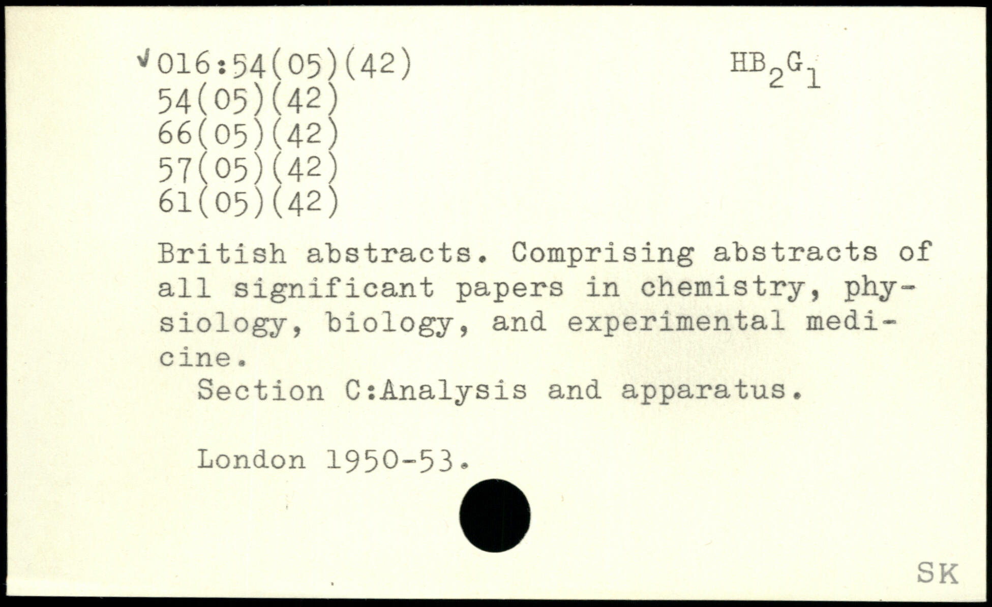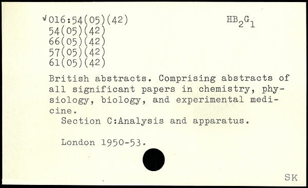 British abstracts. Comprising abstracts of all significant papers in chemistry, physiology, biology, and experimental medicine. Section CiAnalysis and apparatus.