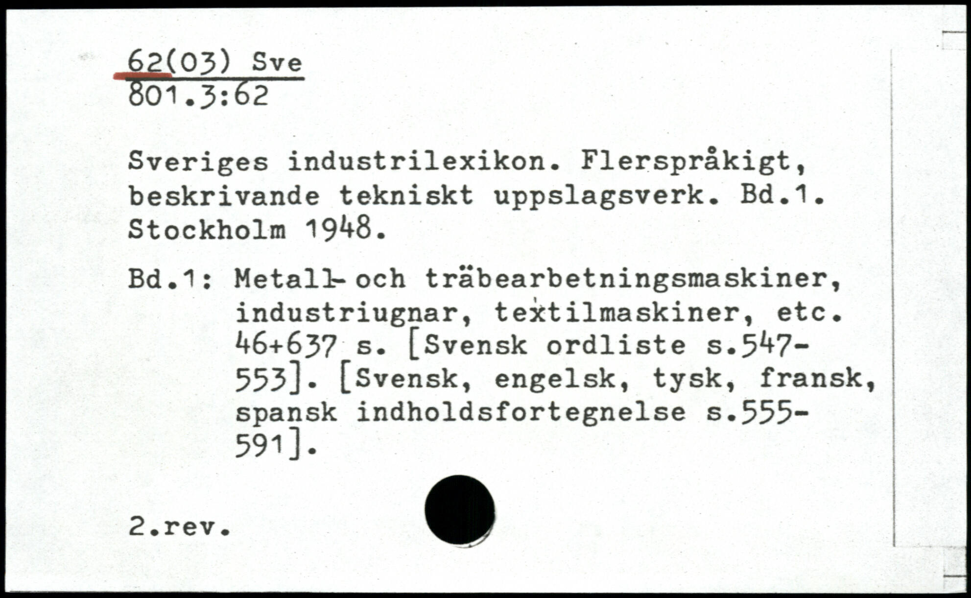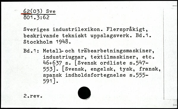 Sveriges industrilexikon. Flerspråkigt, beskrivande tekniskt uppslagsverk.