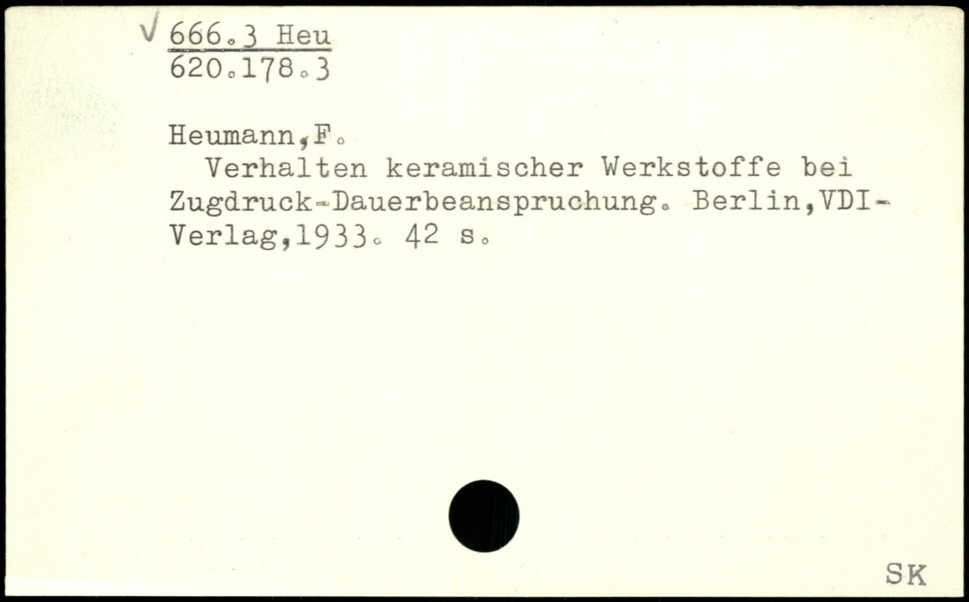 Verhalten keramischer Werkstoffe bei Zugdruck-Dauerbeanspruchungo Berlin,VDI~ Verlag,1933o