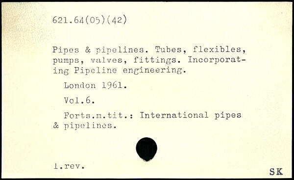 Pipes & pipelines. Tubes, flexibles, pumps, valves, fittings. Incorporating Pipeline engineering.