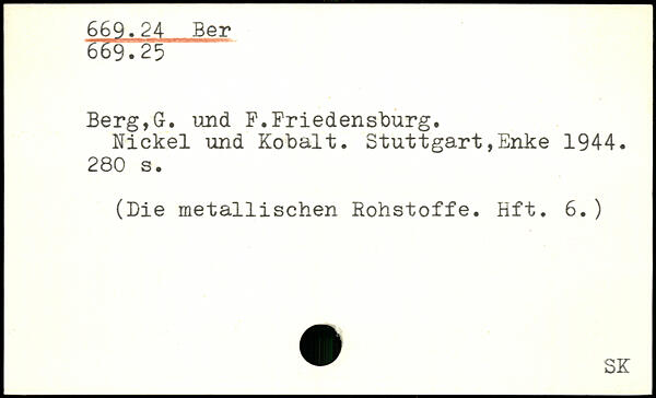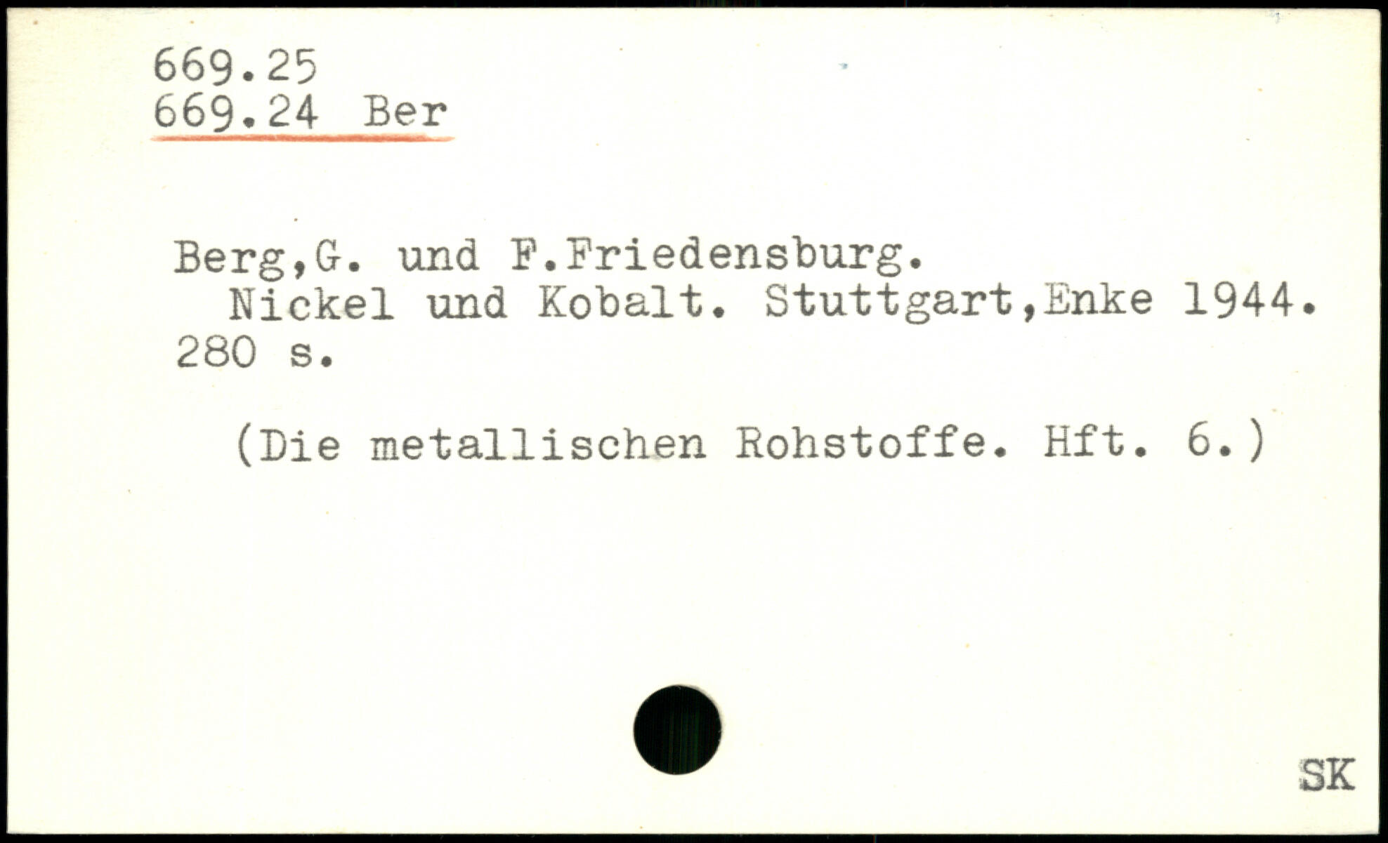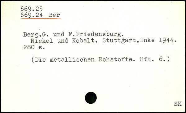 Berg,G. und F.Friedensburg. Nickel und Kobalt. Stuttgart,Enke 1944.