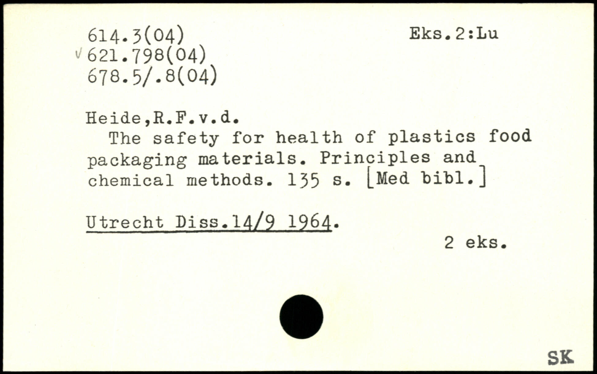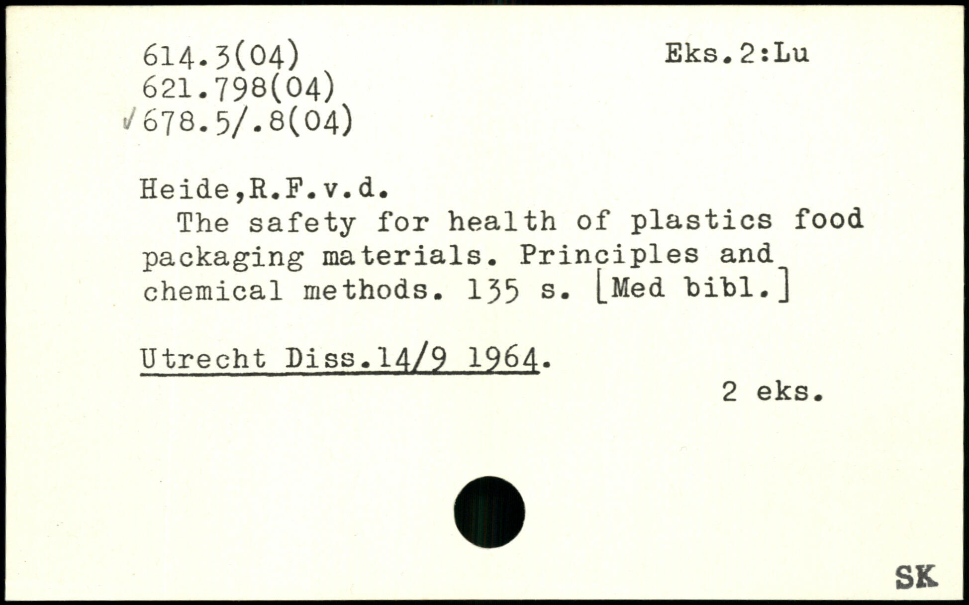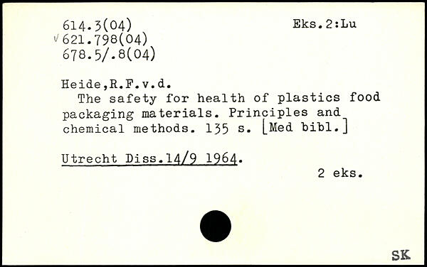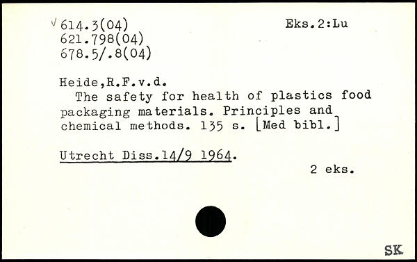 The safety for health of plastics food packaging materials. Principles and chemical methods.