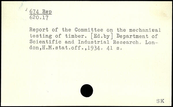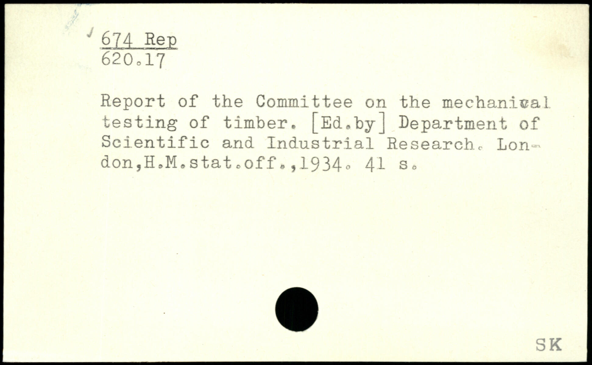 Report of the Committee on the mechanical, testing of timber. [Ed.by] Department of Scientific and Industrial Research. London,H.M. stat ,off .,1934.
