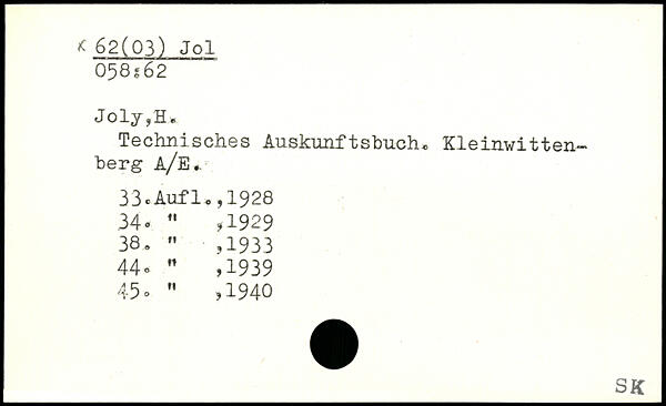 Technisches Auskunftsbuch. Kleinwittenberg a/e,. 33.Auf1,,1928 34, " .1929 38. " ,1933 44, " ,1939 45, " >1940