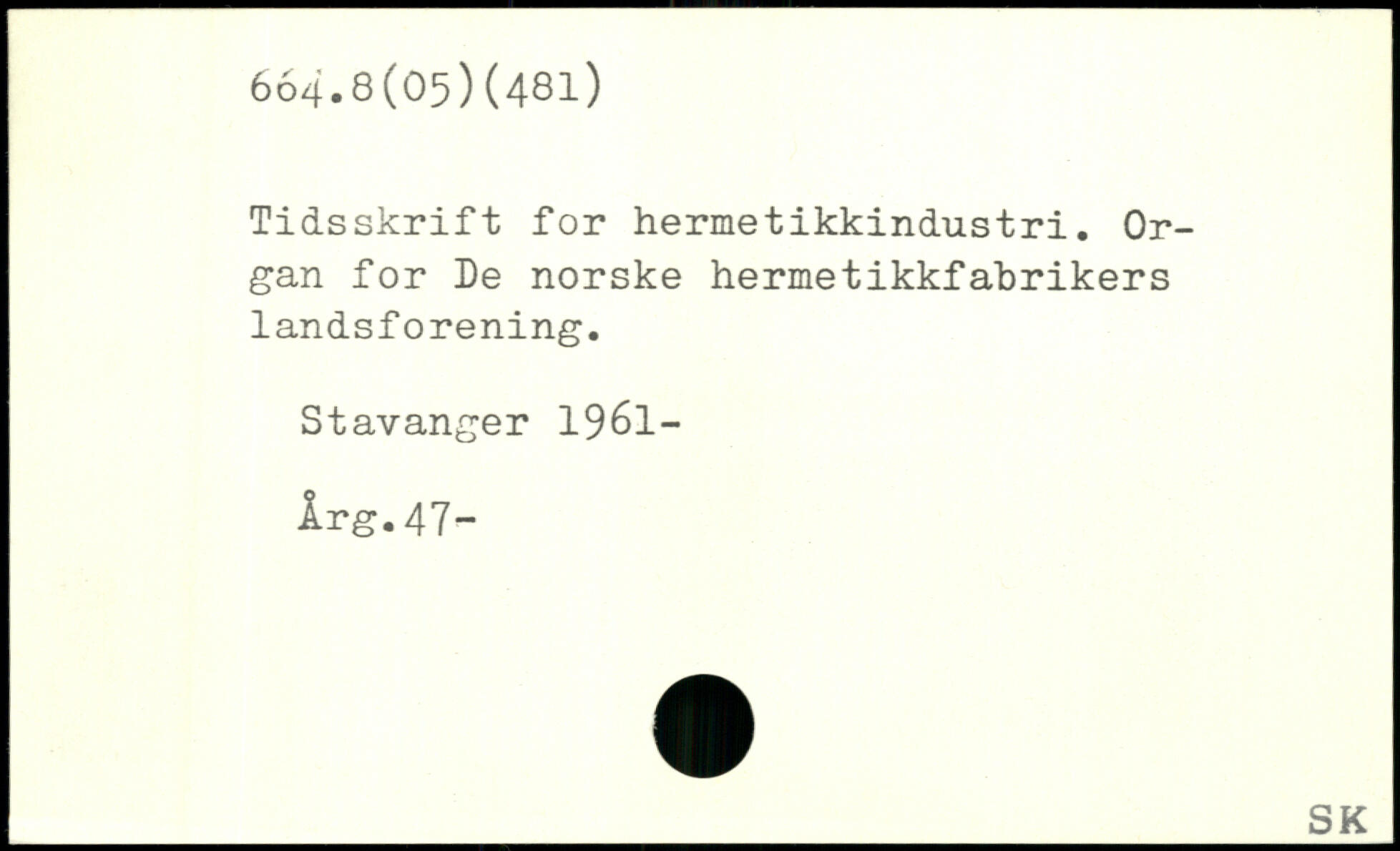 Tidsskrift for hermetikkindustri. Organ for De norske hermetikkfabrikers landsforening. Stavanger 1961- irg.47-
