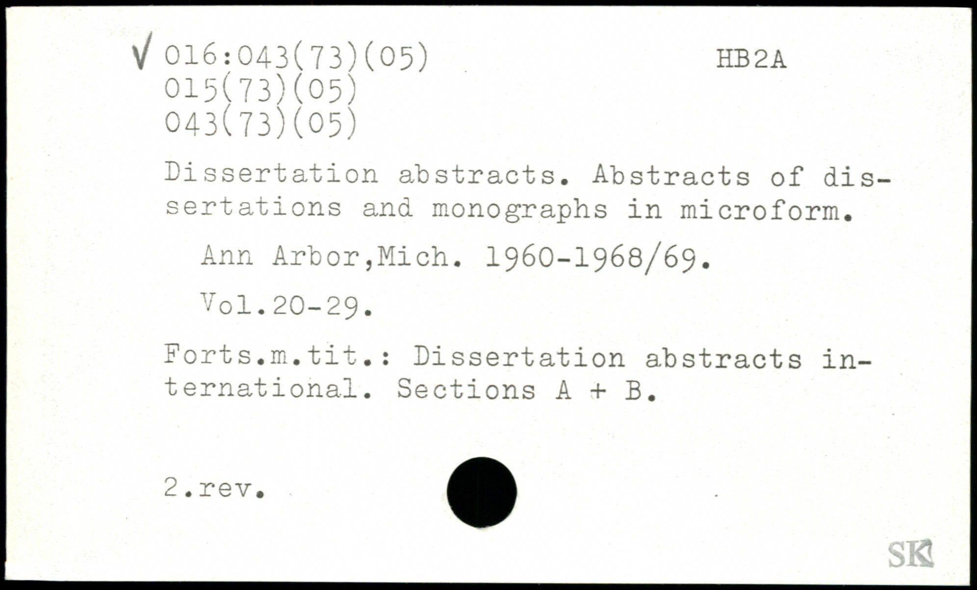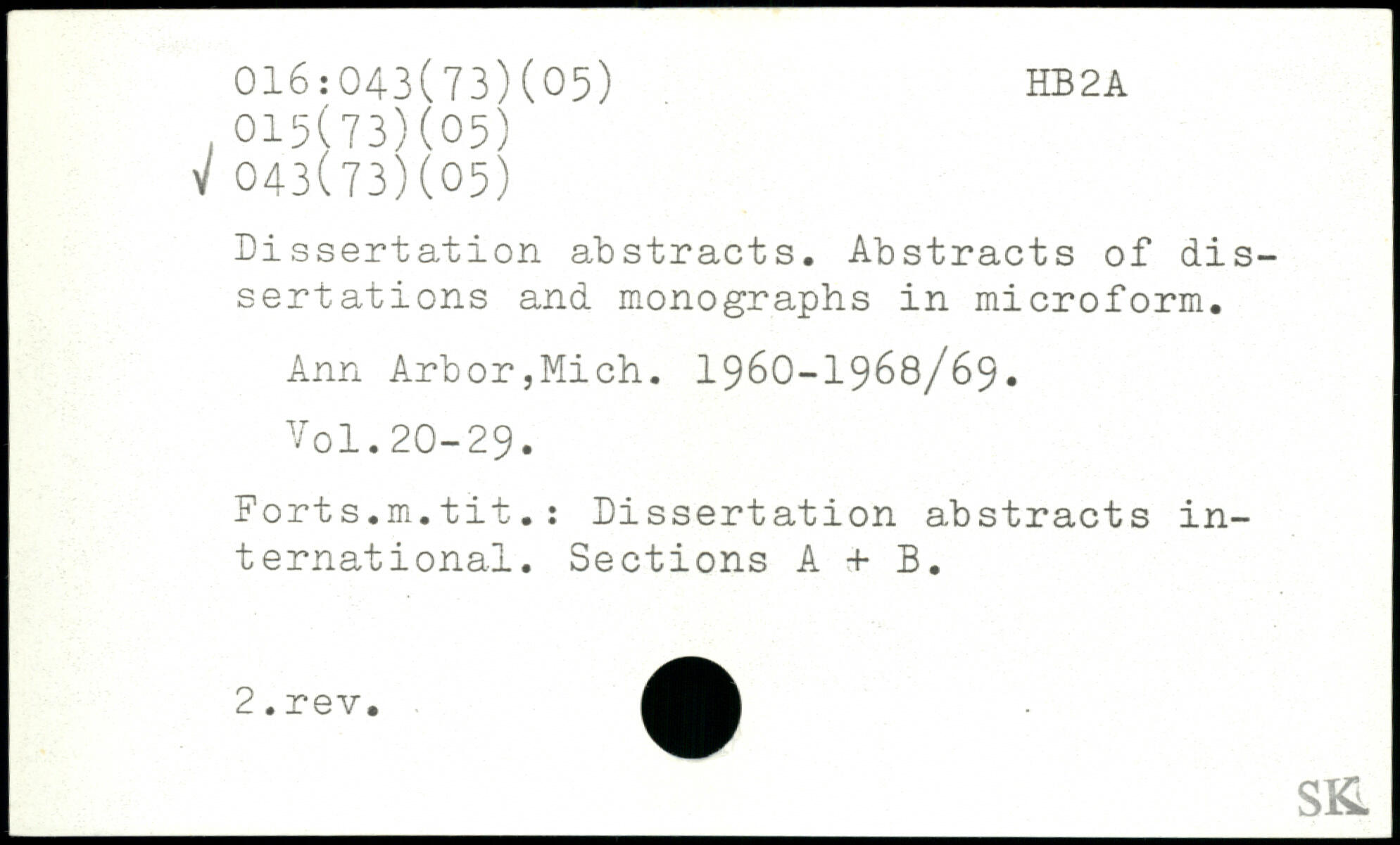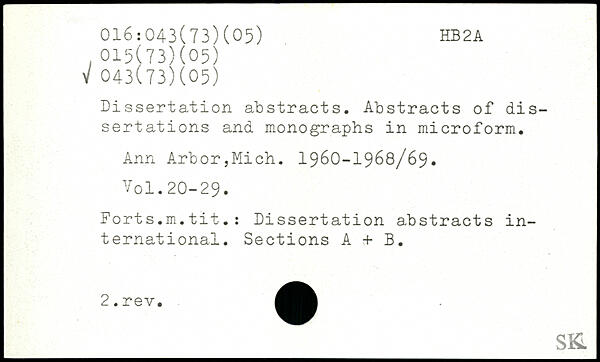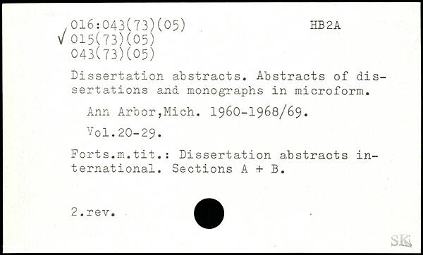 Dissertation abstracts. Abstracts of dissertations and monographs in microform. Ann Arbor,Mich. 1960-1968/69.