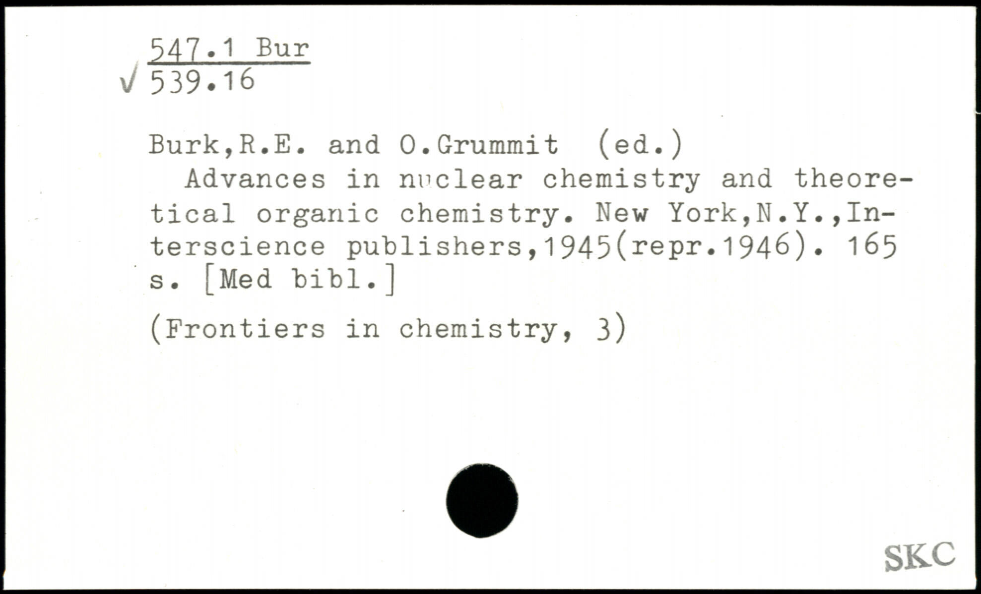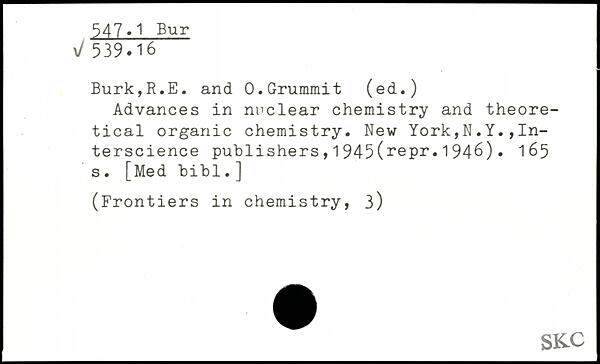 Advances in nuclear chemistry and theoretical organic chemistry. New York,N.Y.,Interscience publishers , 1 945(i,epr. 1 946).