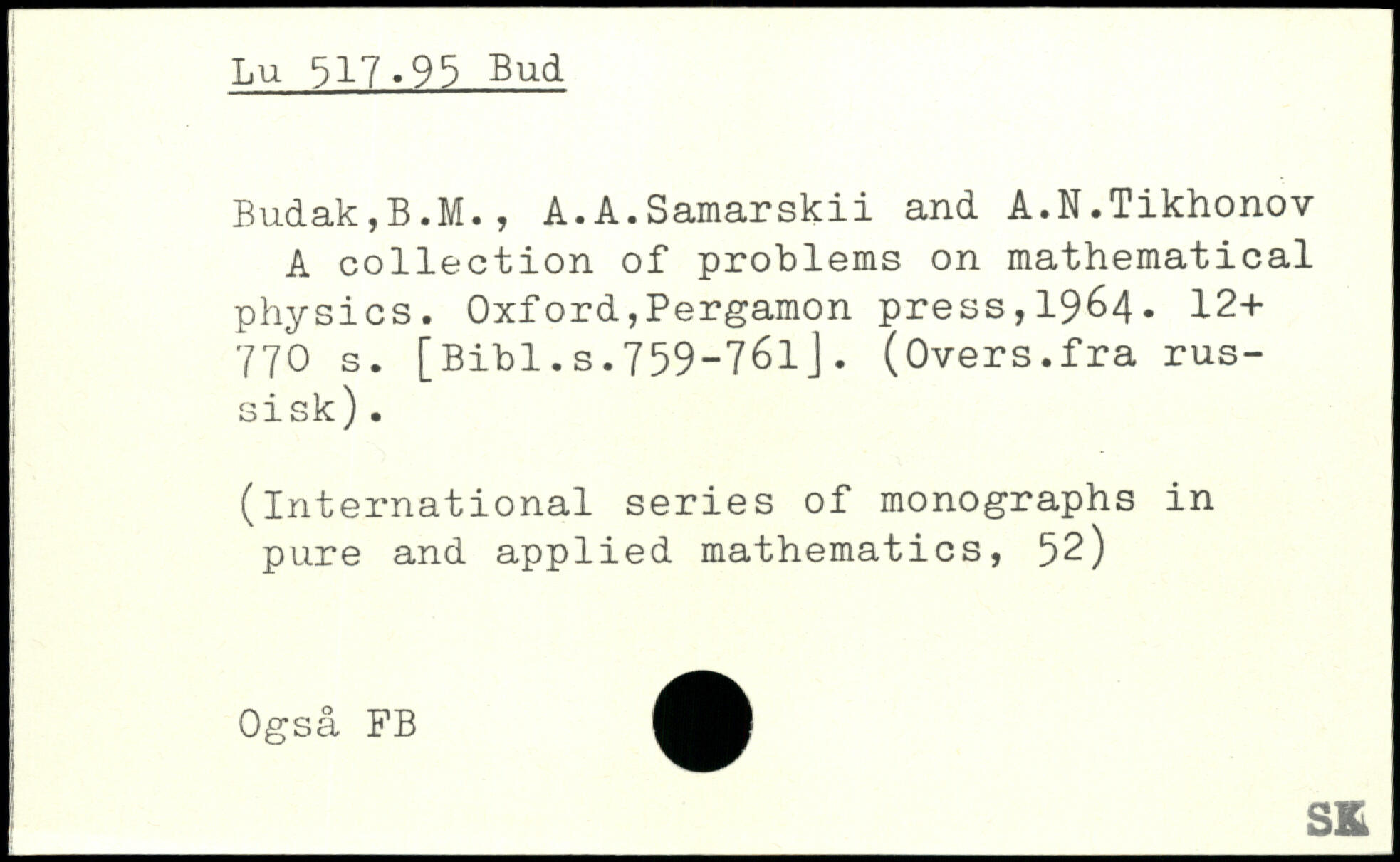 Budak,B.M., A.A.Samarskii and A.N.Tikhonov A collection of problems on mathematical physics.