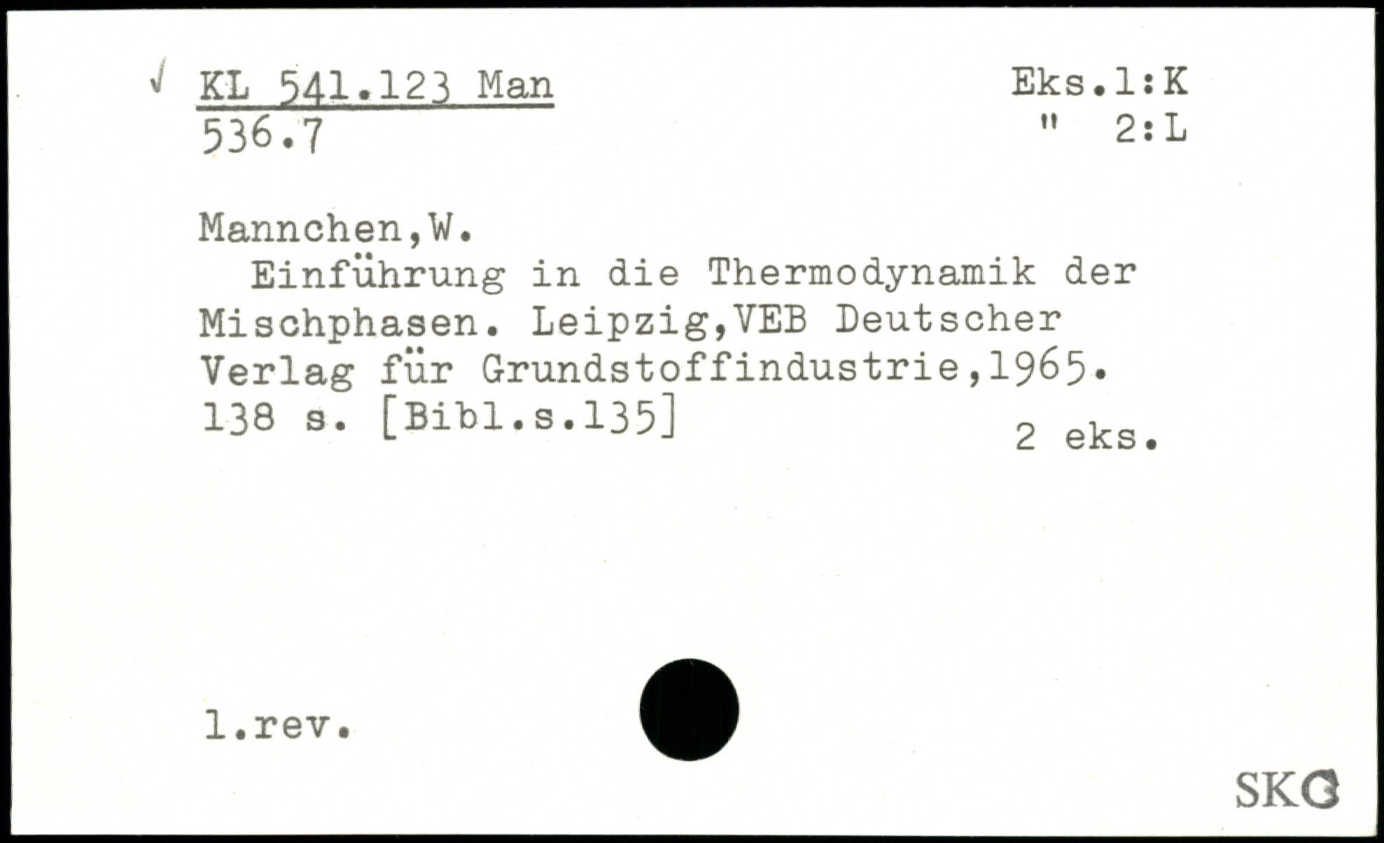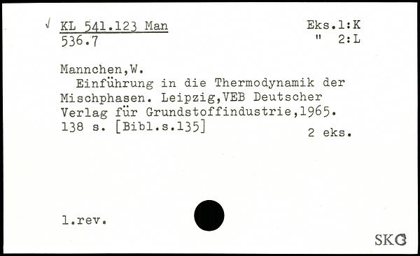 Einführung in die Thermodynamik der Mischphasen. Leipzig,YEB Deutscher Verlag für Grundstoffindustrie,1965. 138 a.