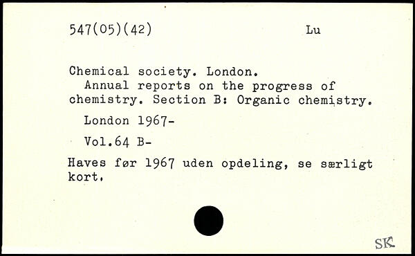 Chemical society. London. Annual reports on the progress of chemistry. Section Bs Organic chemistry.